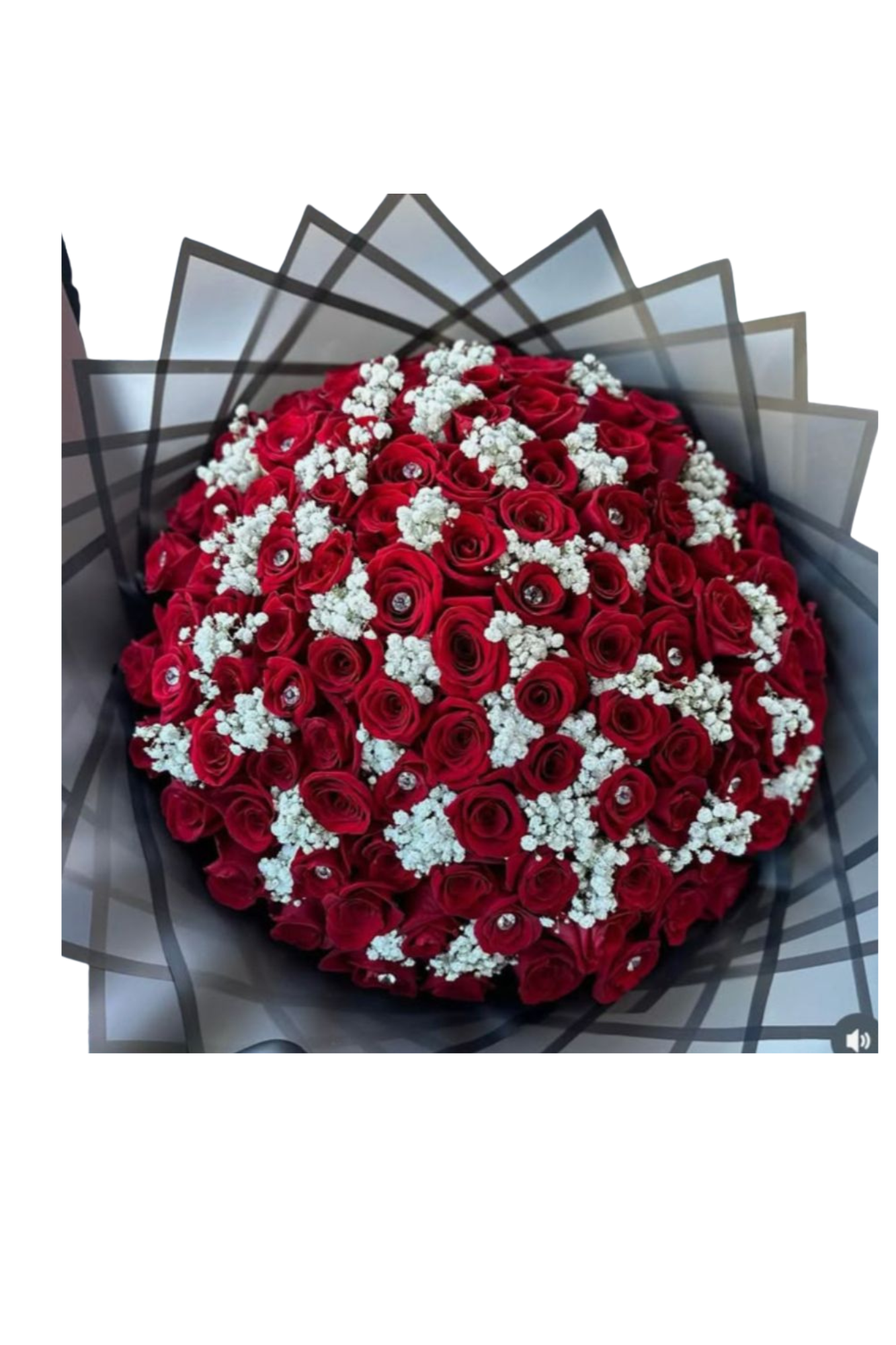 Un ramo impresionante de rosas rojas y finos detalles blancos, diseñado para expresar amor profundo y emociones que laten fuerte.